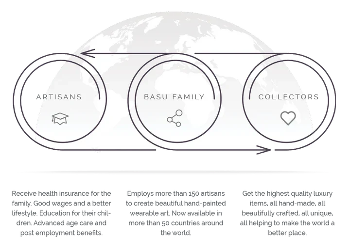 A one-of-a-kind product starts with a one-of-a-kind story. Inspired by art and the emotions it evokes, the Basu family set out to give customers something different. Products made with raw skill and unwavering passion, each infused with deep meaning and thoughtful craftsmanship. What they created was more than just a handbag: Wearable works of art that bring joy to the lives of those who carry them and to the artists who helped to create them, and with that, Anuschka was born in 1988.
